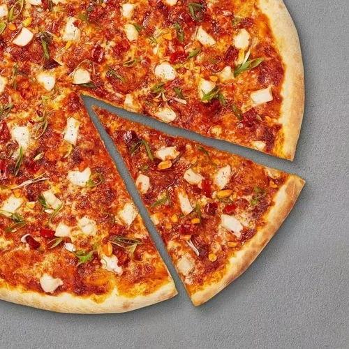 接下来,博主开始涂抹番茄酱,撒上芝士,再铺上各种肉类和蔬菜。这一环节,简直是视觉盛宴,让人垂涎欲滴。将披萨放入烤箱,等待美味的诞生。